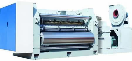 ·采用吸附导纸方式,吸附罩与机架通过铰轴连接,需要时可旋转脱离瓦楞辊,维修或更换瓦楞辊时不需整体拆除;并配有吸风风机1台。